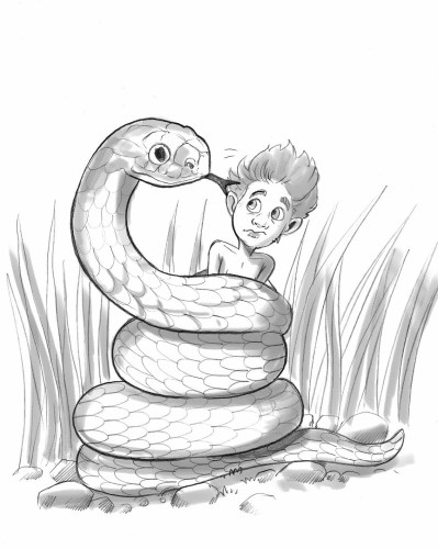 «Non riuscirai a seppellirmi viva!», gridò la biscia. E lo raggiunse. Posso la guardò accigliato. «Viva? Ma io non volevo seppellirti viva. Pensavo fossi morta e non volevo lasciarti lì esposta». Il rettile socchiuse gli occhi a due fessure. «Come faccio a sapere che non menti? Non mi fido di te». «Se è per questo nemmeno io mi fido di te. Non si dicono cose tanto belle di voi serpenti. Io volevo solo darti una degna sepoltura».