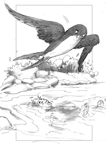Lui è Codino. In questa storia il piccolo Posso sta nuotando beatamente nel laghetto del bosco, quando all’improvviso vede una rondine che svolazza sopra la sua testa. All’inizio si spaventa, poi trova la calma necessaria per riordinare le idee e parlare con quello che è per lui un essere bizzarro che si muove in modo frenetico.