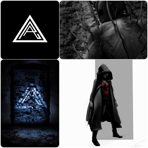 Tratto da Stratum. Inscientia: “Le due ‘A’ stavano per Accademia di Auraspei. La prima ‘A’ era azzurra, la seconda grigia. Il contorno della piramide giallo, l’interno metà marrone e metà verde. C’erano tutti i colori delle cinque confraternite”.